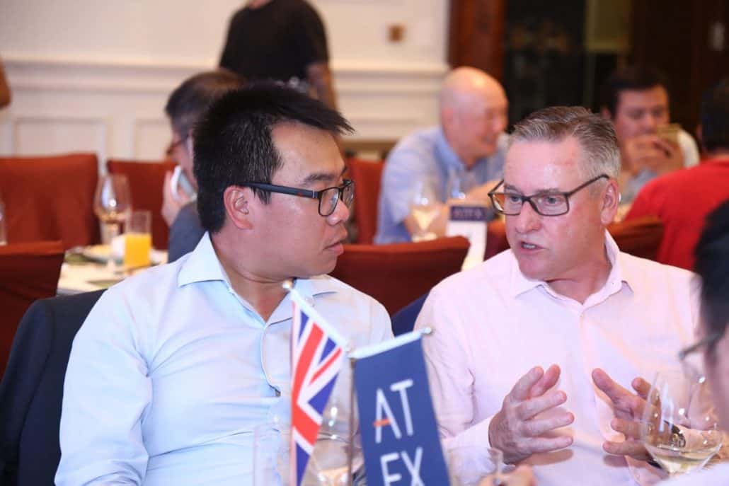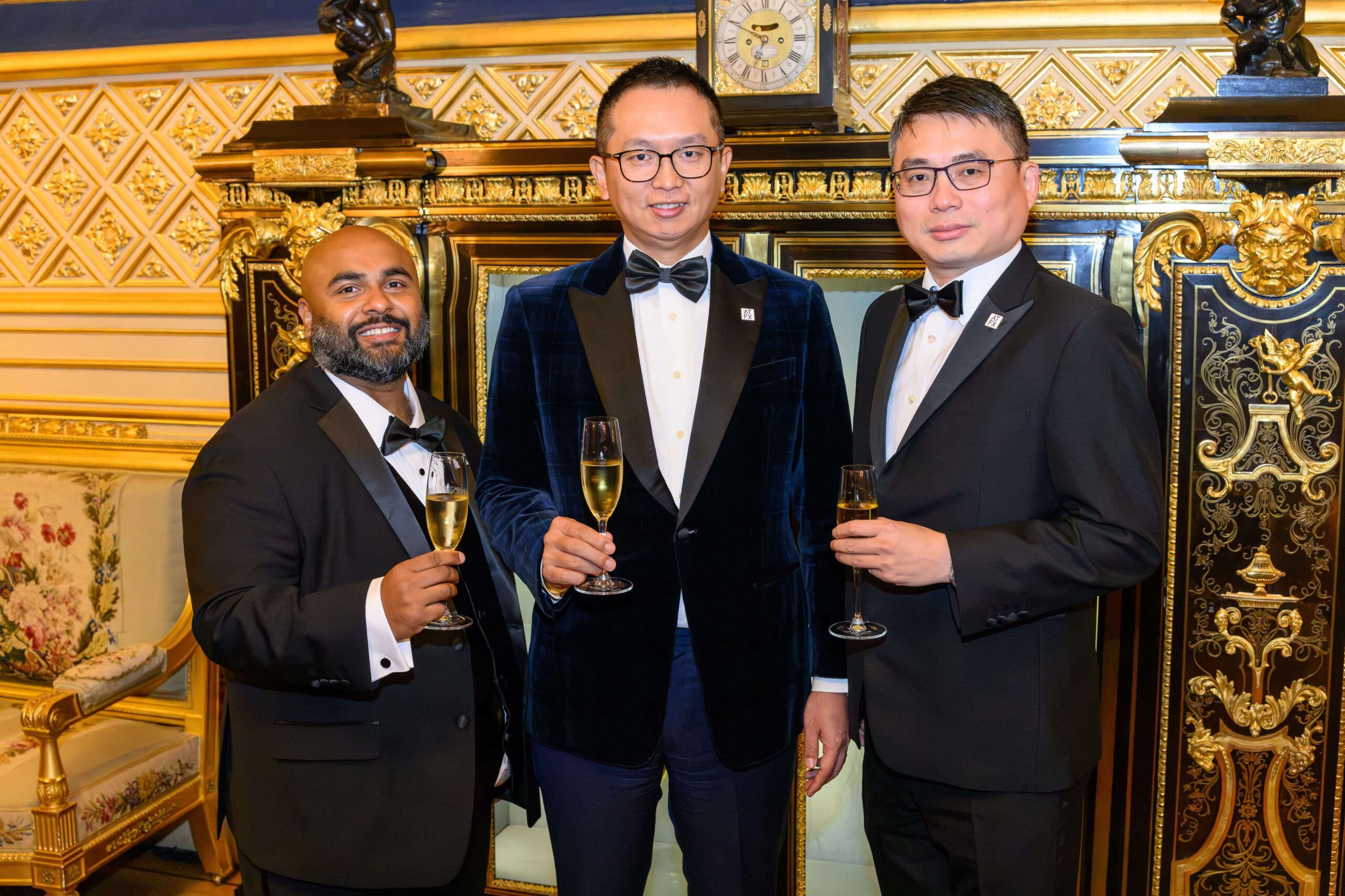 [From left to right] Weems Chan (ATFX Global Head of Marketing & Branding), Wei Qiang Zhang (ATFX UK Managing Director), Ergin Erdemir (ATFX UK Marketing Director), Prince Edward, Earl of Wessex, and Forfar His Royal Highness exchanges a few words with key ATFX leaders at the dinner event.