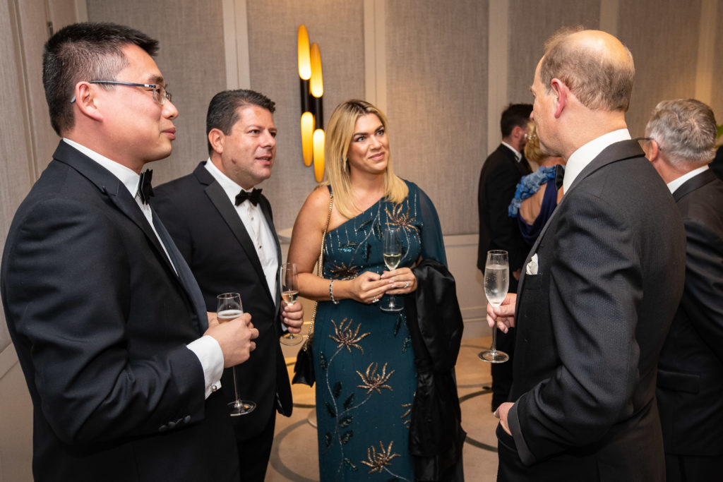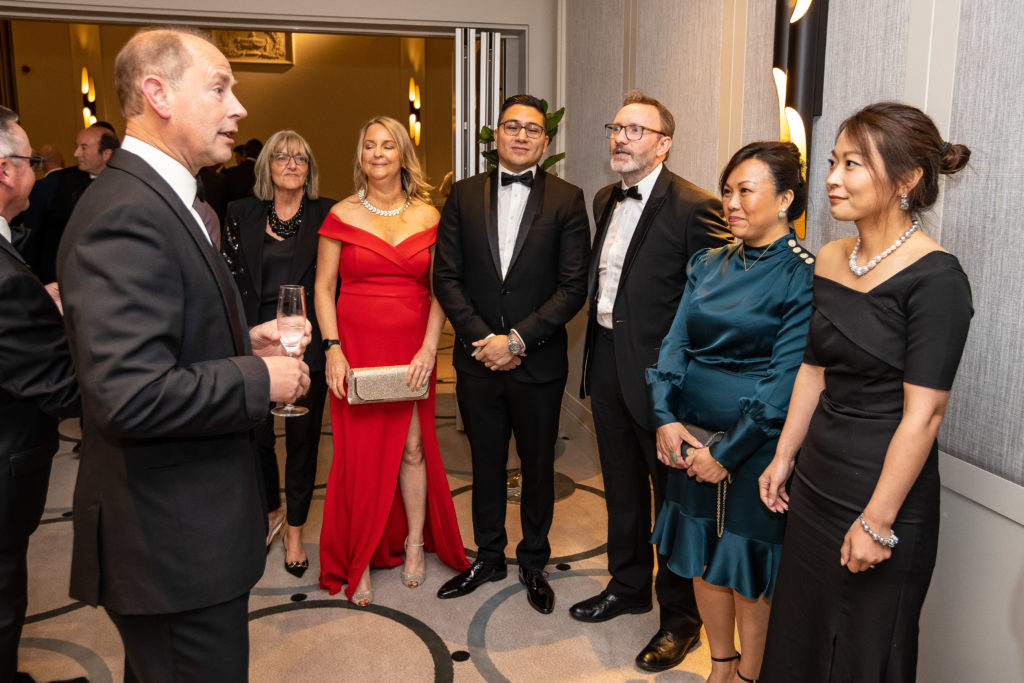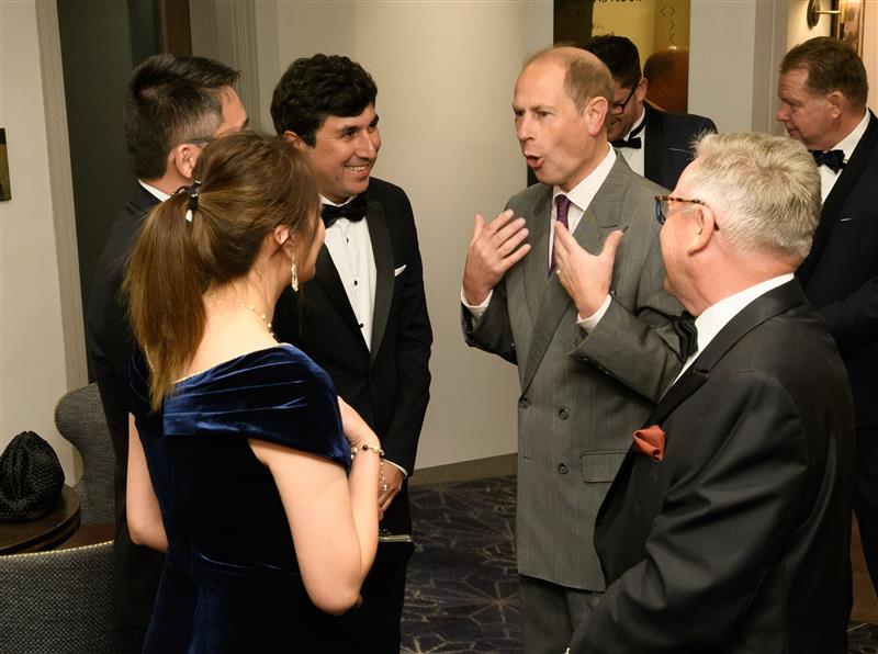 The ATFX team being greeted by Prince Edward, Earl of Wessex and Forfar during the prize-giving dinner held in the ballroom of The Castle Hotel, Windsor on 29 September 2022.