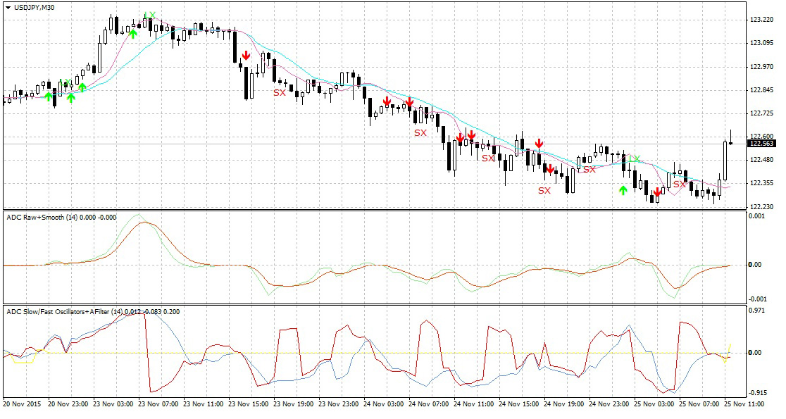 Grafik USD/JPY 30 menit. Dengan Indikator Divergensi & Konvergensi Adaptif TRADING CENTRAL, Anda bisa mendapat visualisasi potensi sinyal masuk dan keluar di grafik apa pun.